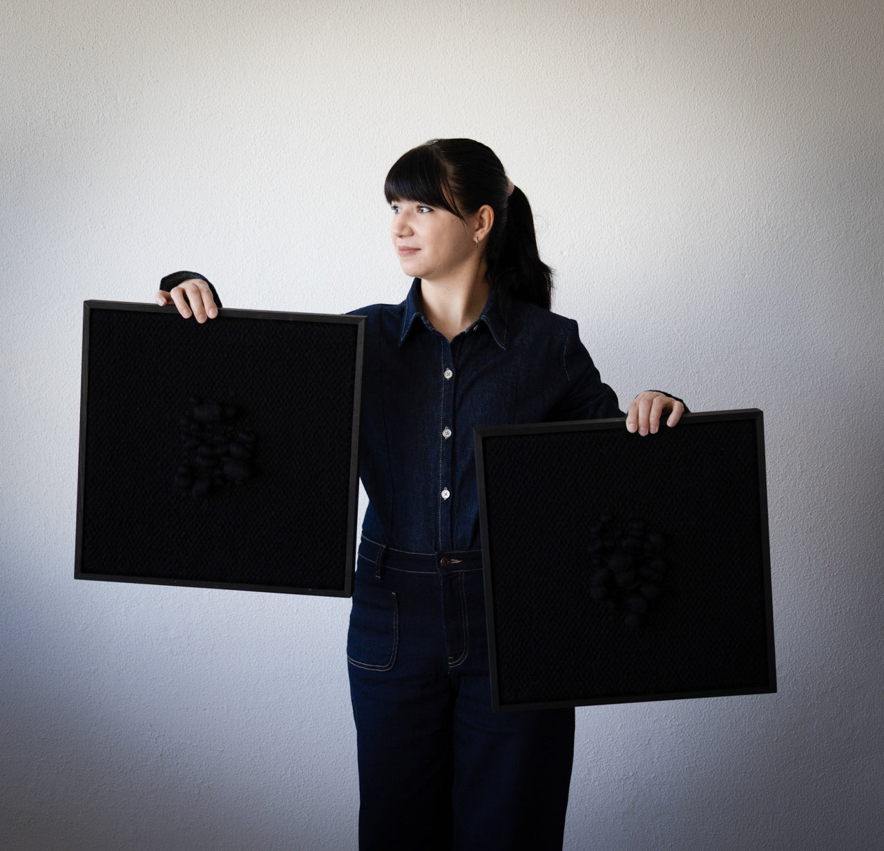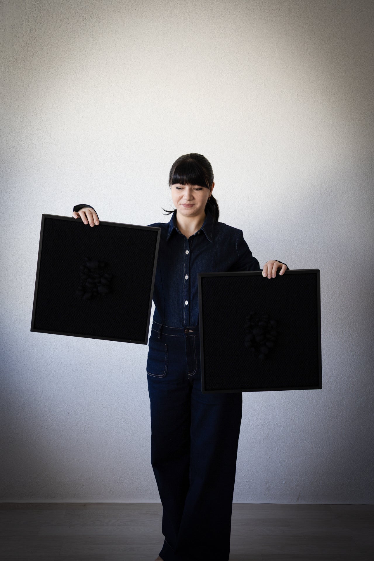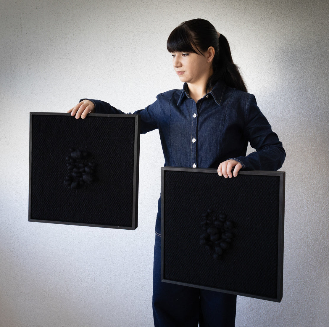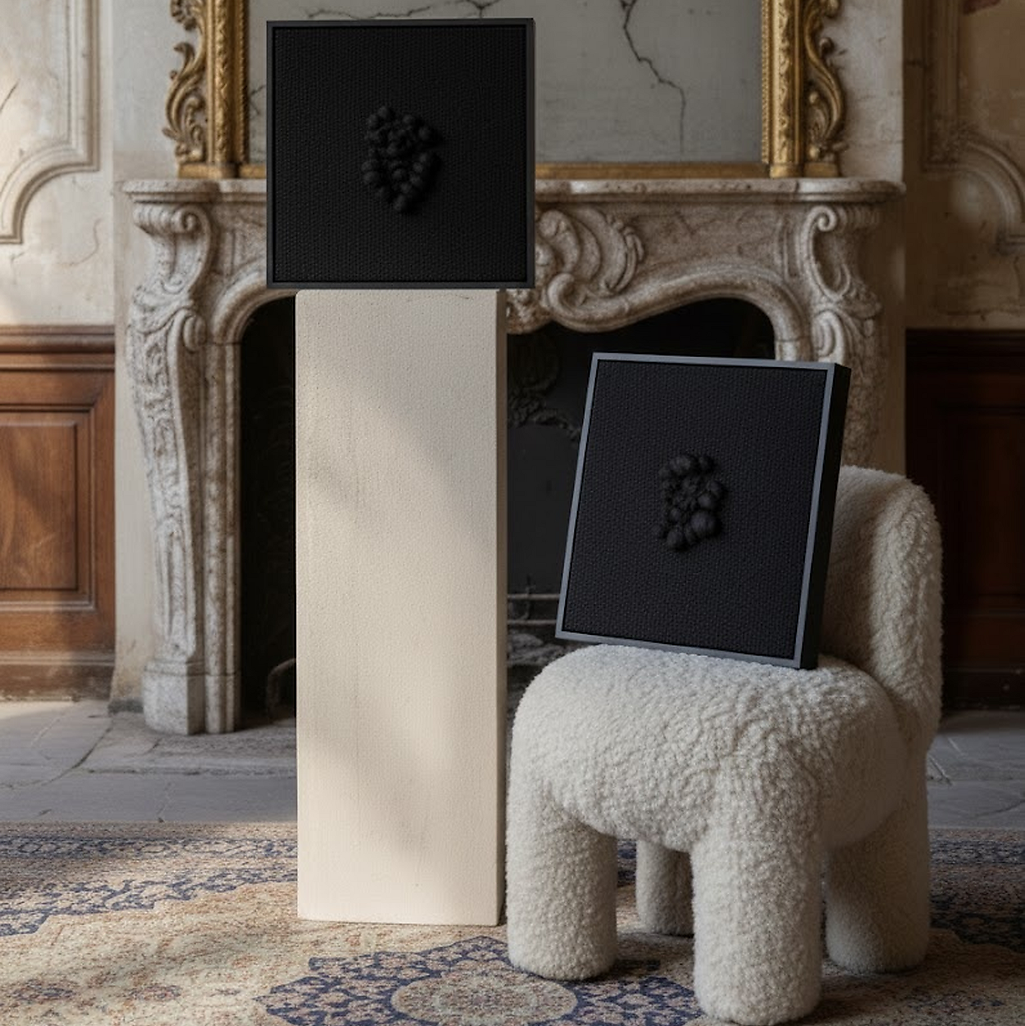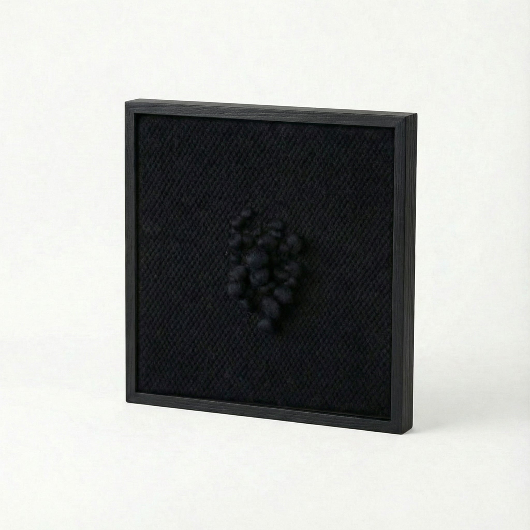 Transform your space with ENIGMA, a handwoven tapestry that is a masterpiece of monochromatic texture. This is not just decoration; it is a sculpture captured in shadow. Crafted from 100% premium black wool and set in an exclusive ebony frame, this tapestry blends craftsmanship with mysterious elegance.