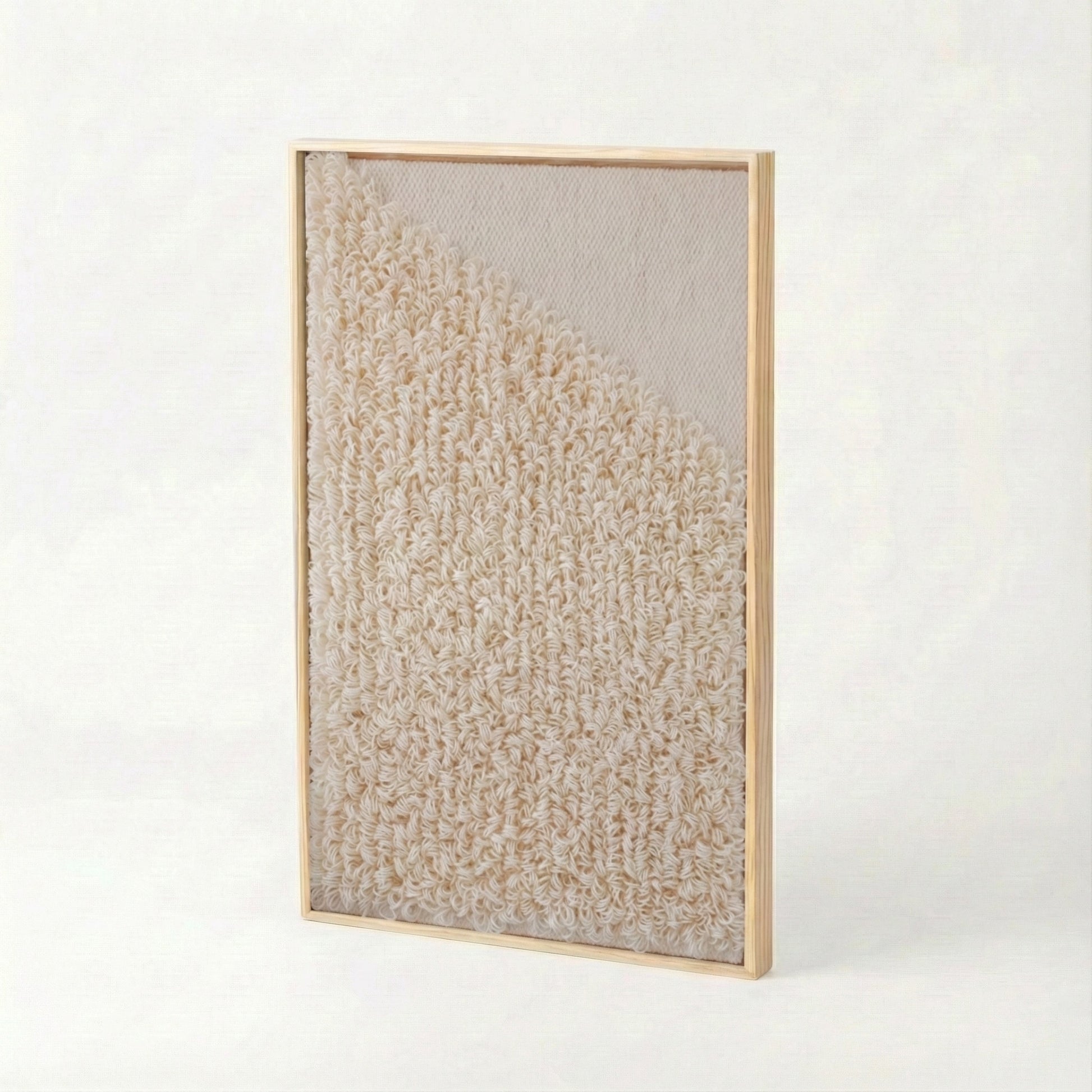 Framed 5 is a unique Wall Tapestry, meticulously handcrafted in our Polish workshop. Using only the finest wool in natural cream and beige shades, we create a refined Wall Decor, perfect for enhancing any interior.