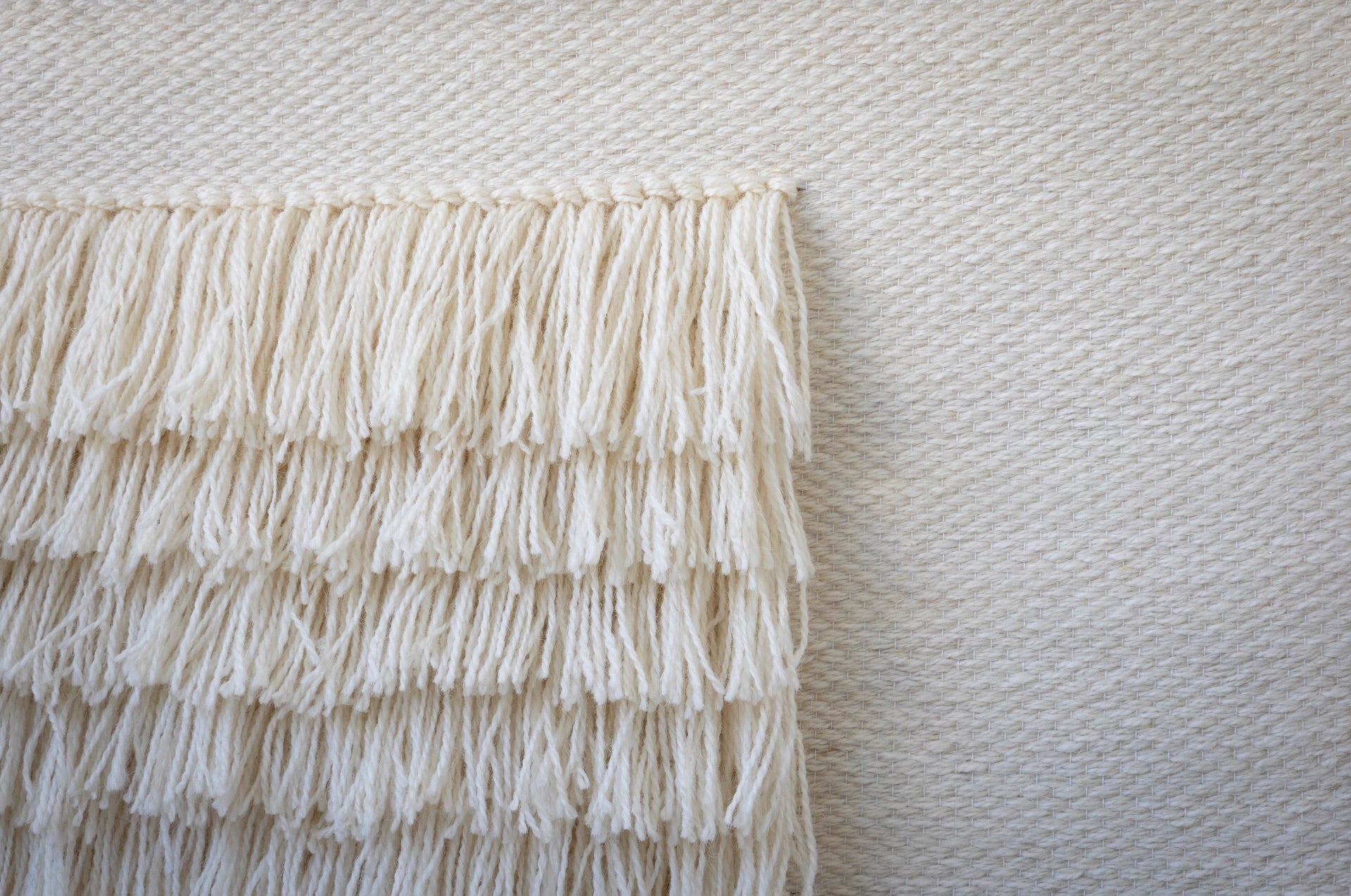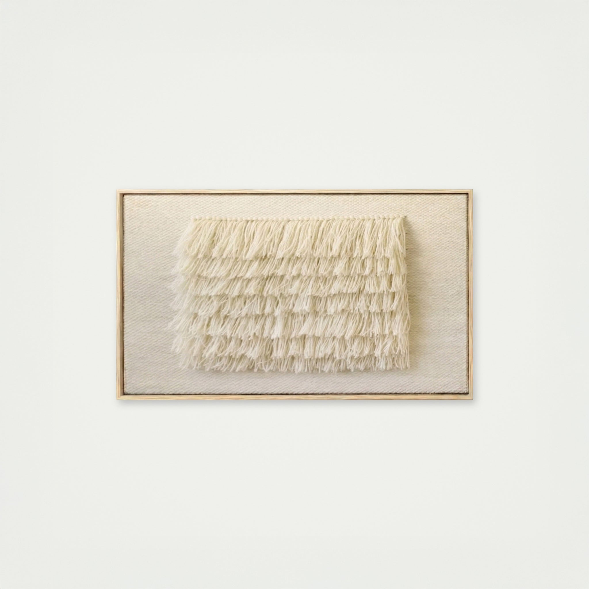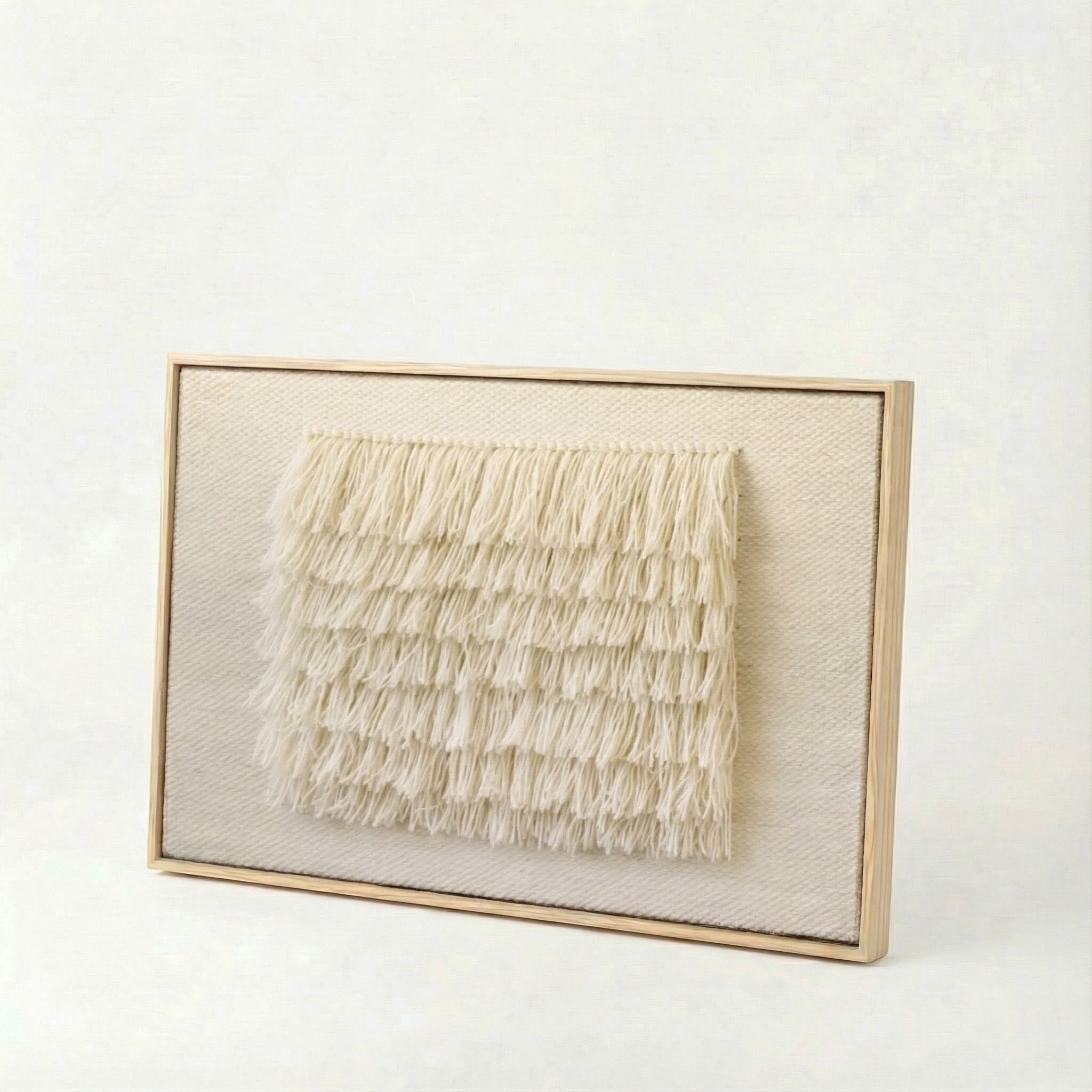 Bring soft dimension and calm beauty into your interior with FruFru. This handcrafted wall tapestry captivates with its gentle texture and refined simplicity. Woven from raw white wool, it features a fluffy, raised pattern that adds a sculptural quality while maintaining a neutral palette.