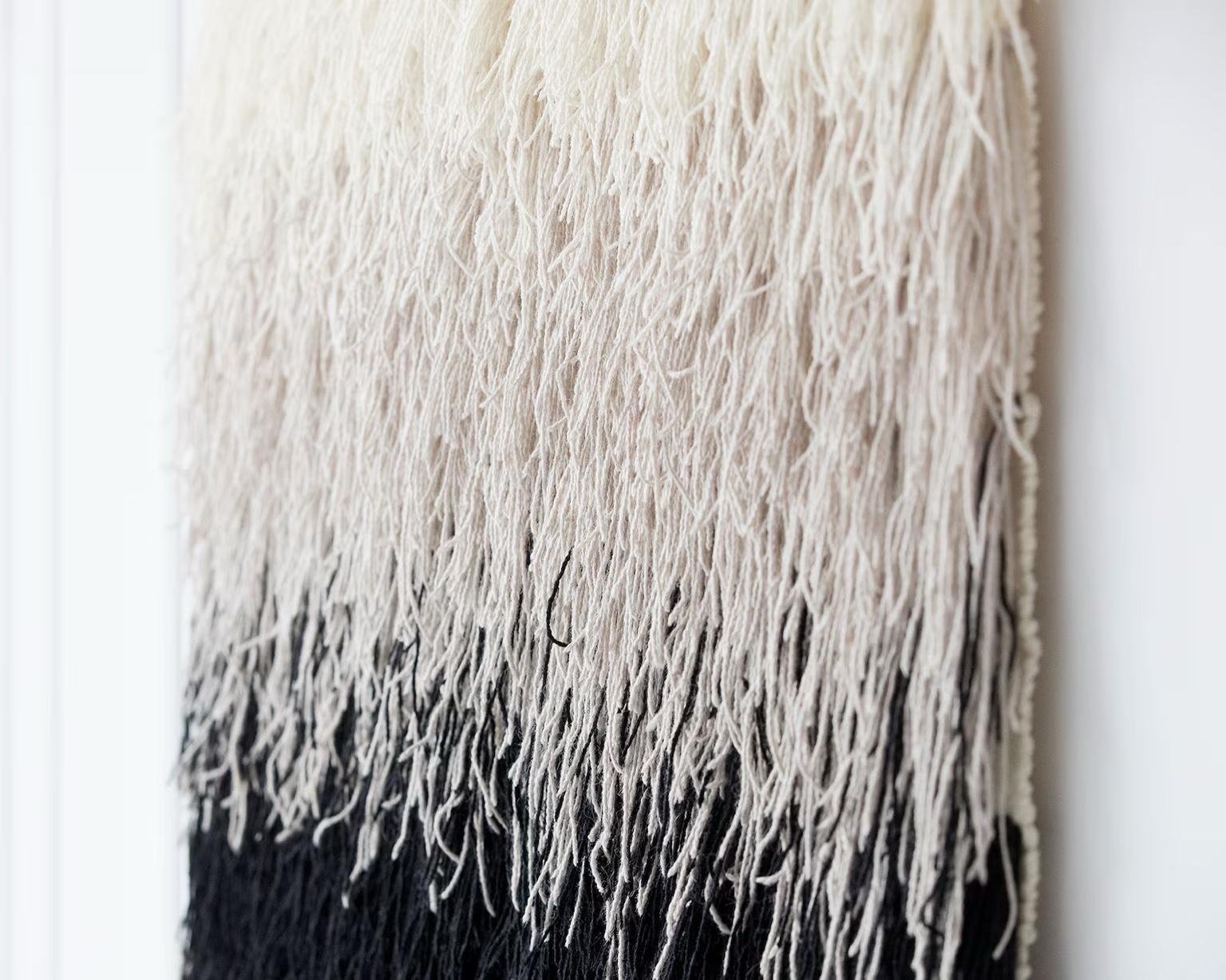 Introduce a sense of refined texture and depth to your home with Nude, a handwoven wall tapestry from the Shaggy collection. Made with natural wool in a harmonious blend of black, beige, and off-white tones, this unique piece brings a bold yet versatile aesthetic to any modern or rustic interior.