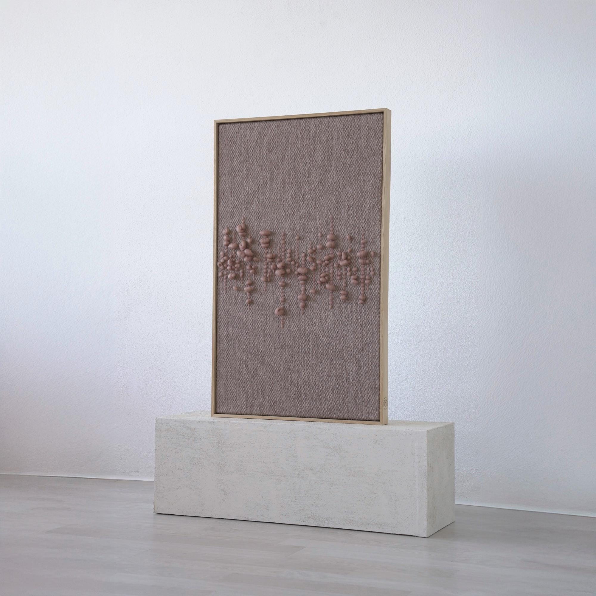 Teor is a handwoven framed tapestry designed as a calm yet expressive focal point for modern interiors. The warm bronze brown palette and sculptural “cloud” texture make it a sophisticated choice for Japandi, Scandinavian and minimalist spaces that need depth without visual noise.