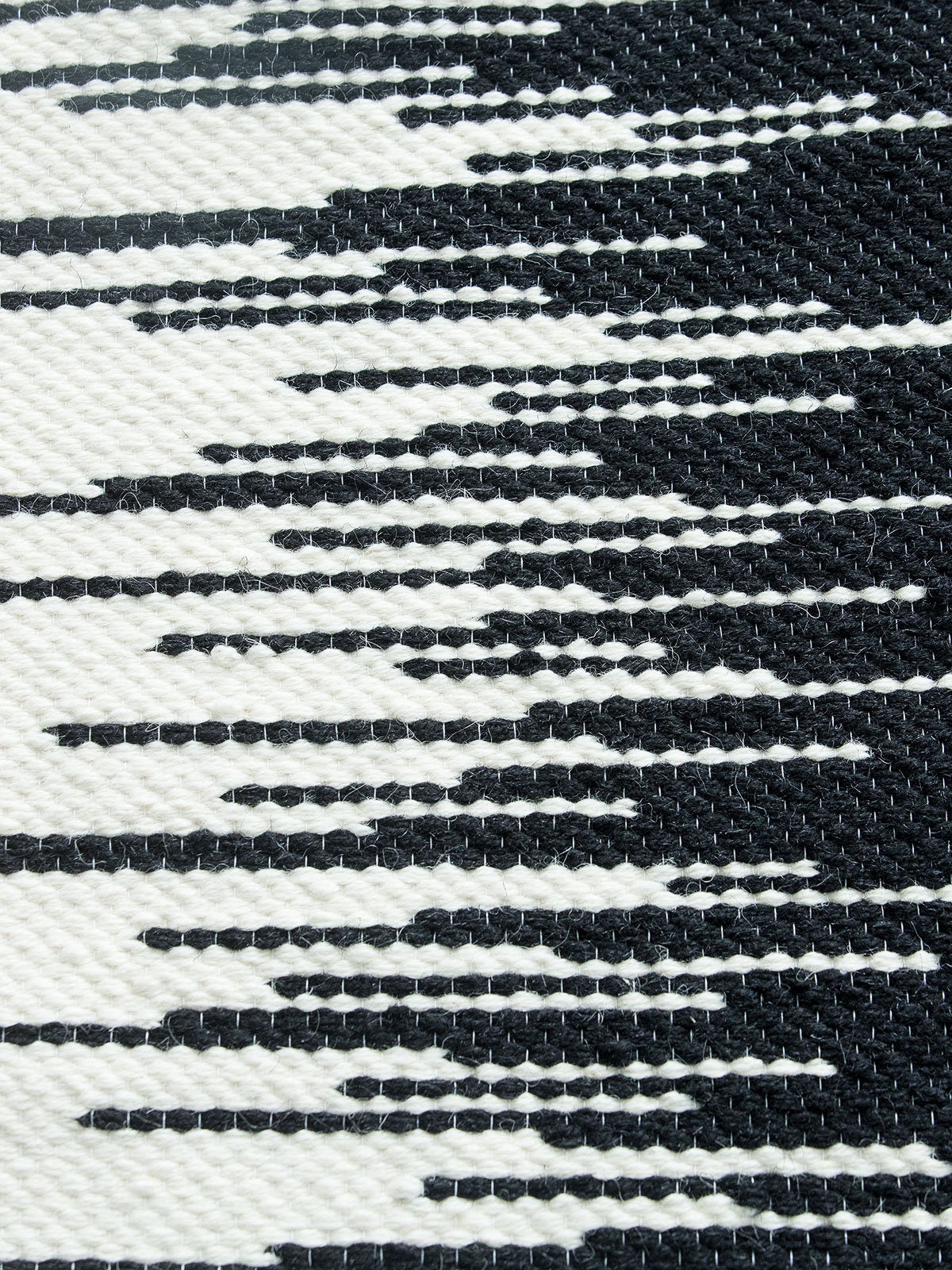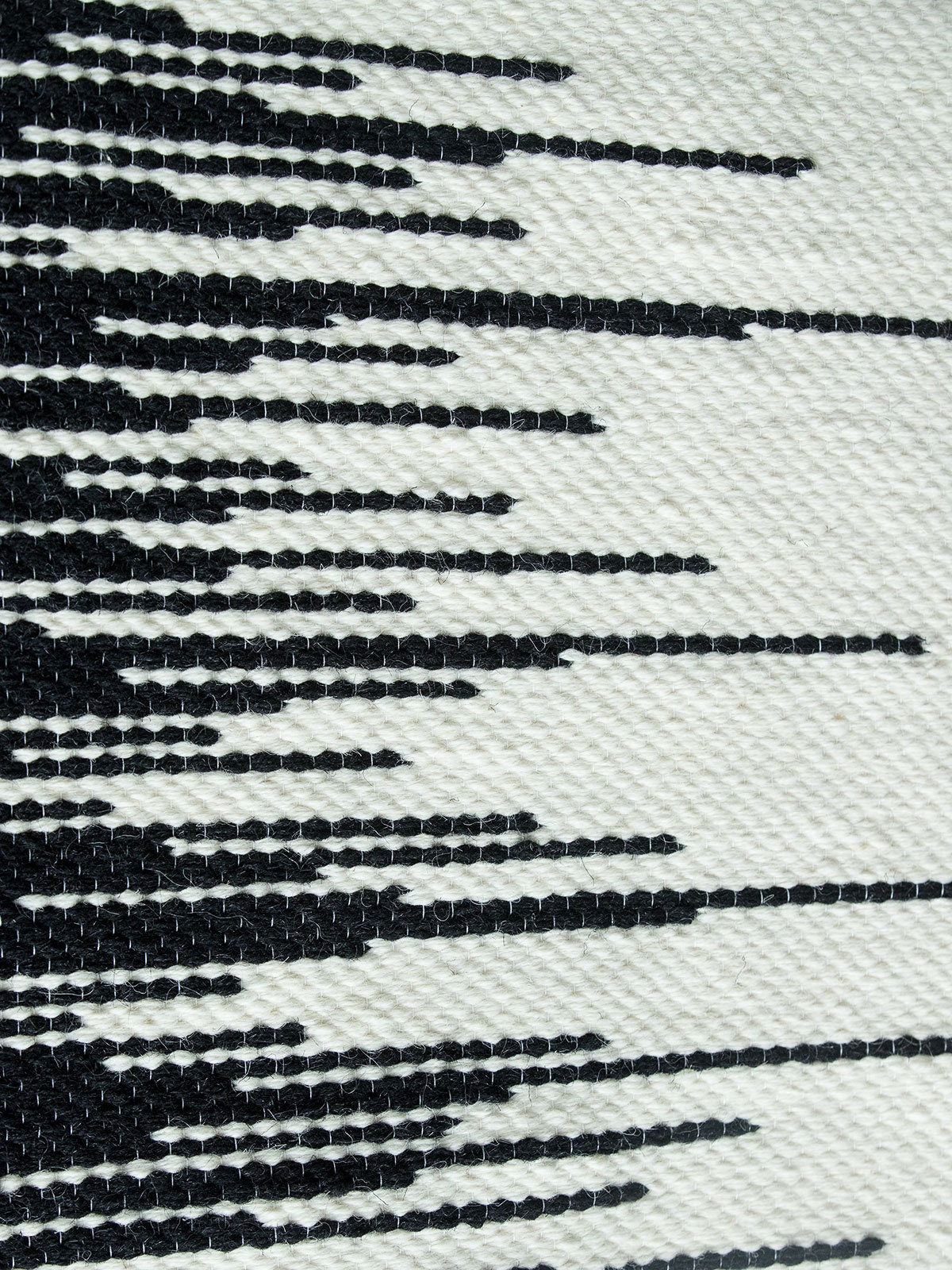 Zebra handwoven wall tapestry featuring a bold black and beige zigzag geometric design, crafted from natural wool and mounted on a bamboo rod. Perfect for Japandi, Scandinavian, and modern interiors.